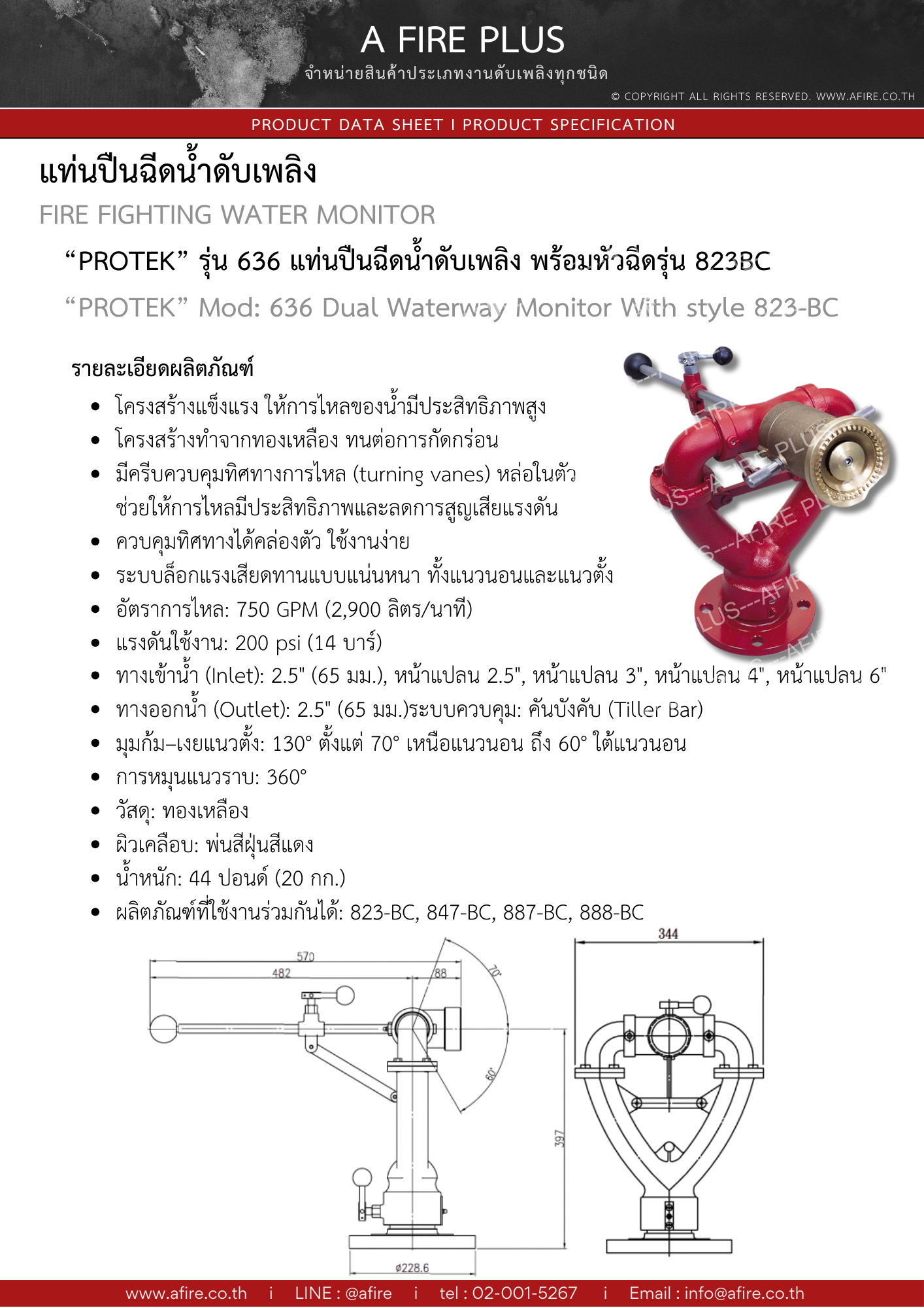 "PROTEK" แท่นปืนฉีดน้ำดับเพลิง รุ่น Style#636 พร้อมหัวฉีด Style#823BC มาตรฐาน FM