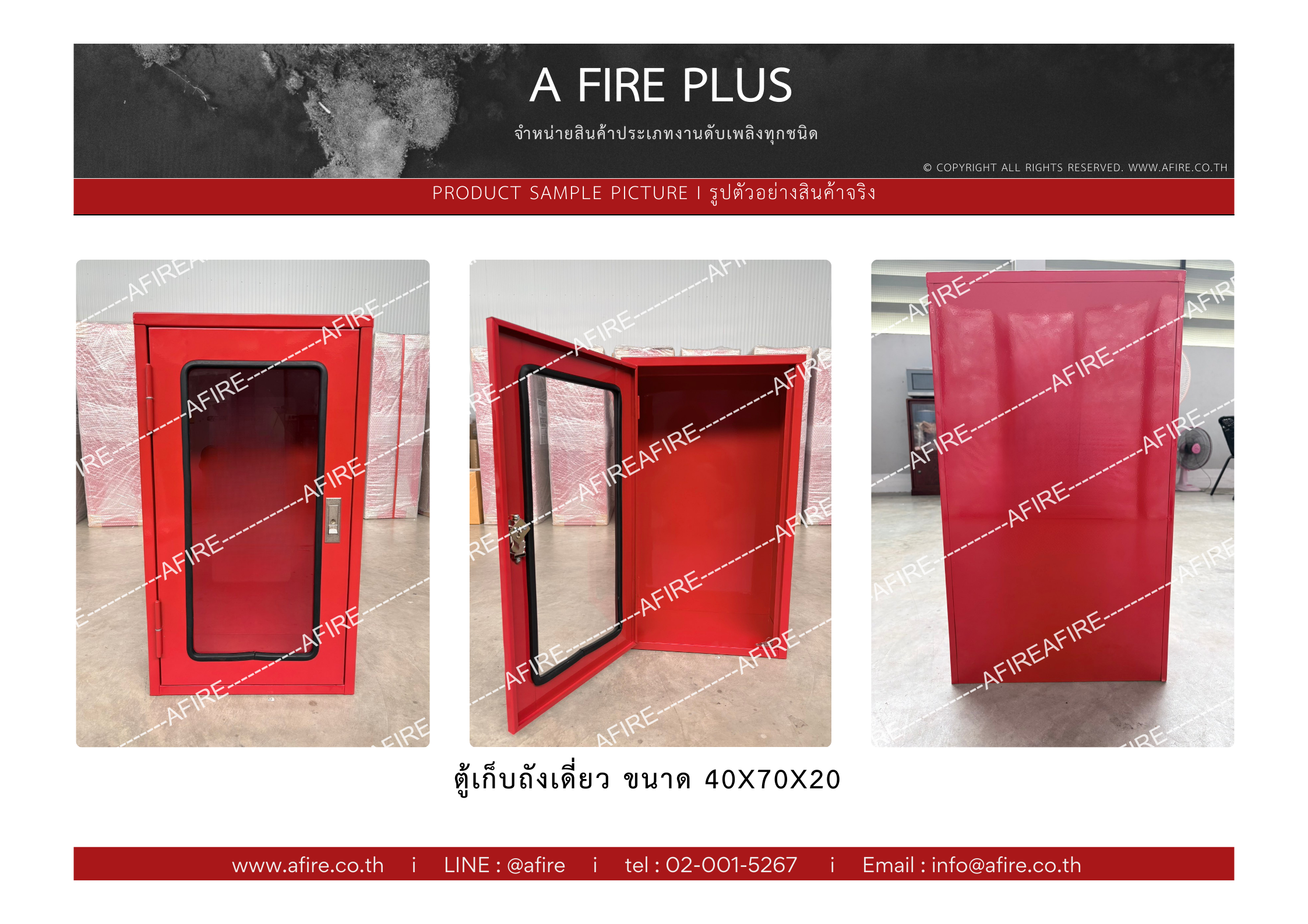 ตู้เก็บเครื่องดับเพลิง แบบถังเดี่ยว ขนาด 40 x 70 x 20cm. Single Fire Extinguisher Cabinet