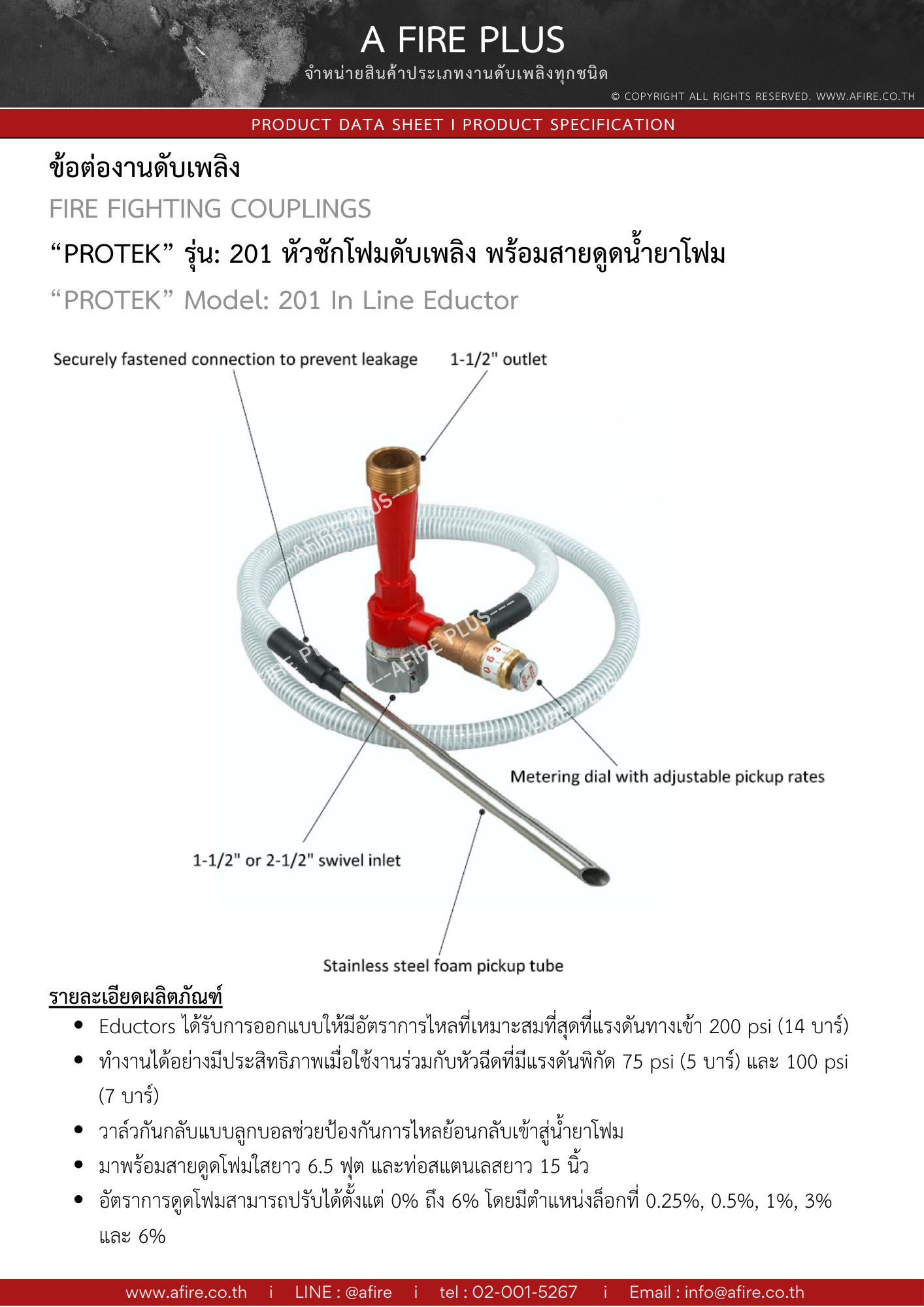 หัวชักโฟม PROTEK 201 In-Line Foam Eductor พร้อมสายดูดน้ำยาโฟม