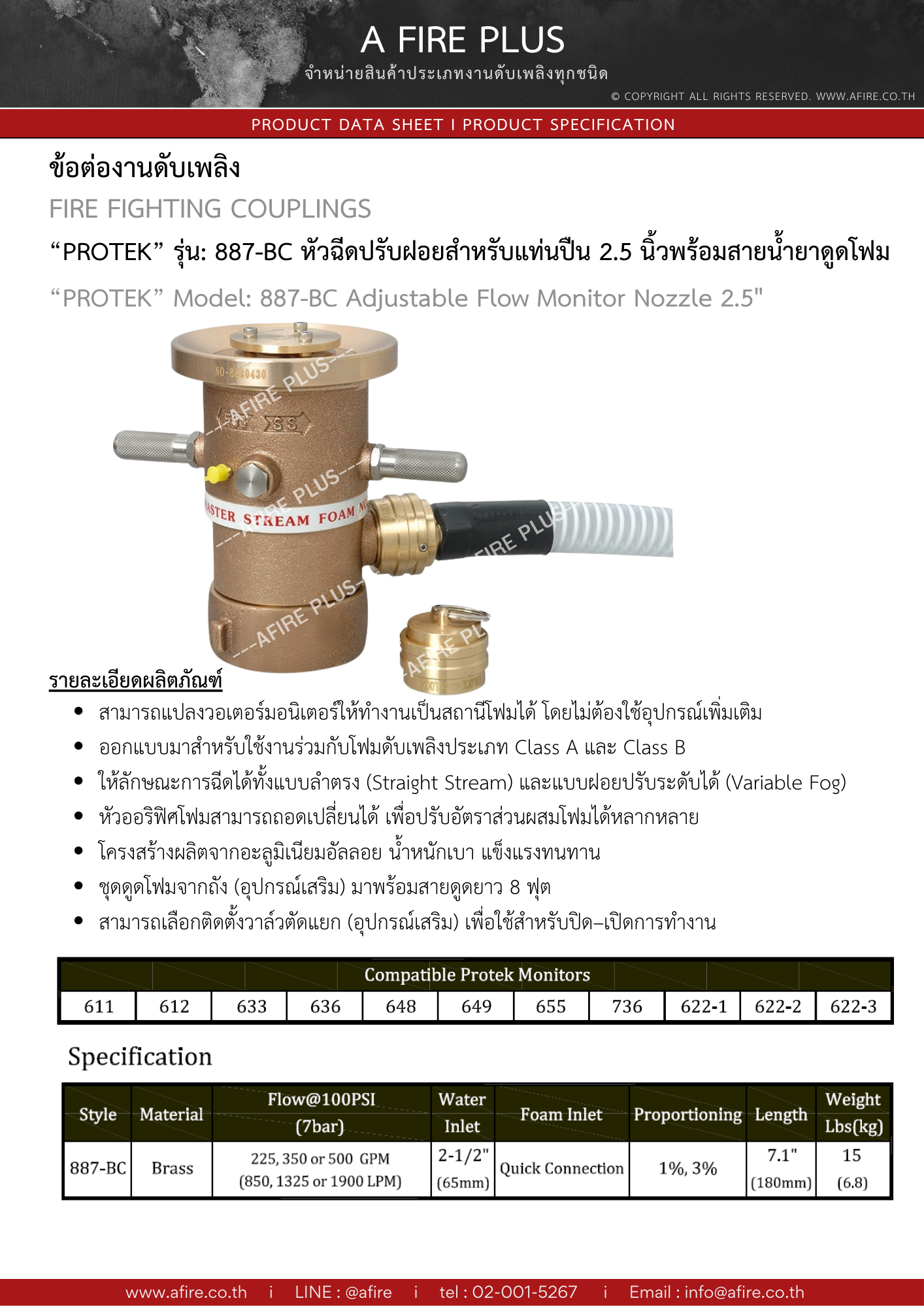 เปลี่ยนแท่นปืนฉีดน้ำดับเพลิงให้เป็นเครื่องฉีดน้ำยาโฟมโดยไม่ต้องใช้อุปกรณ์เพิ่มเติม ออกแบบมาสำหรับใช้งานกับน้ำยาโฟม CLASS A , B การผสมผสานระหว่างสายน้ำตรงและรูปแบบหมอกที่แปรผัน สามารถปรับสัดส่วนน้ำยาโฟมได้ โครงสร้างทองเหลืองทนทานต่อการกัดกร่อนสำหรับงานหนัก ชุดอุปกรณ์ปิ๊กอัพดรัมที่เป็นอุปกรณ์เสริมมาพร้อมกับท่อปิ๊กอัพขนาด 8 ฟุต วาล์วแยกเสริมสำหรับ เปิด-ปิด ได้รับมาตรฐานรับรอง FM