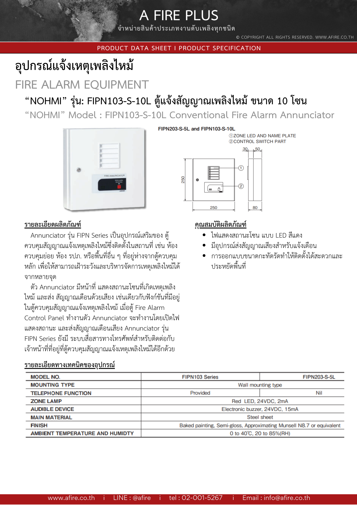 ตู้แจ้งสัญญานเพลิงไหม้ ขนาด 10 Zone รุ่น FIPN103-S-10L ยี่ห้อ Nohmi