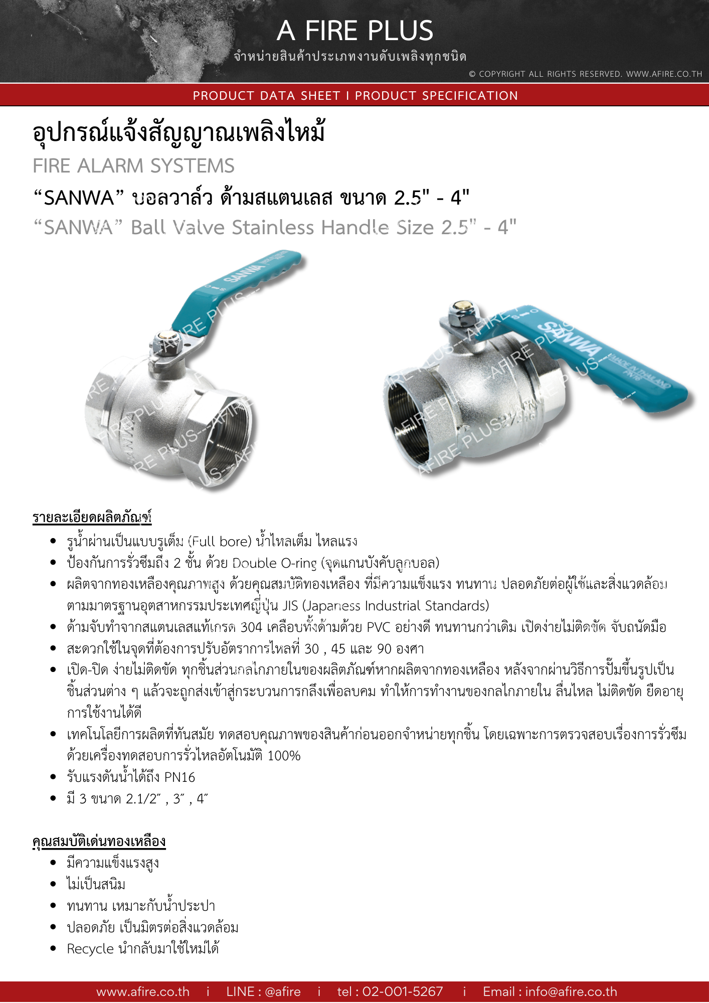 "SANWA" บอลวาล์ว ด้ามสแตนเลส ซันวา ขนาด 2 " - 4 "