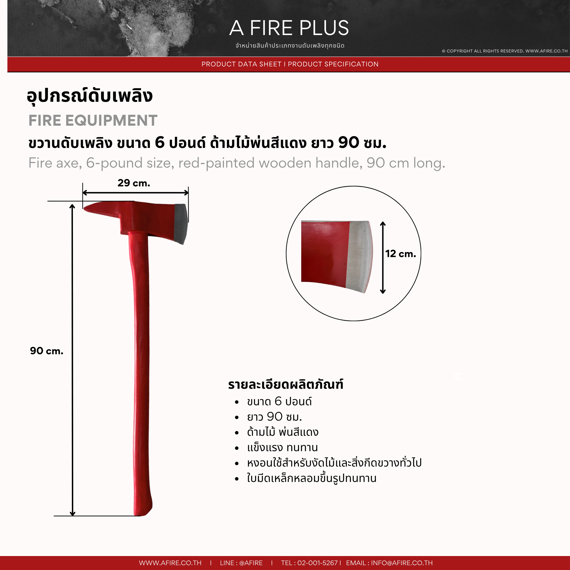 ขวานดับเพลิง ขนาด 6 ปอนด์ ด้ามไม้พ่นสีแดง ยาว 90 ซม.