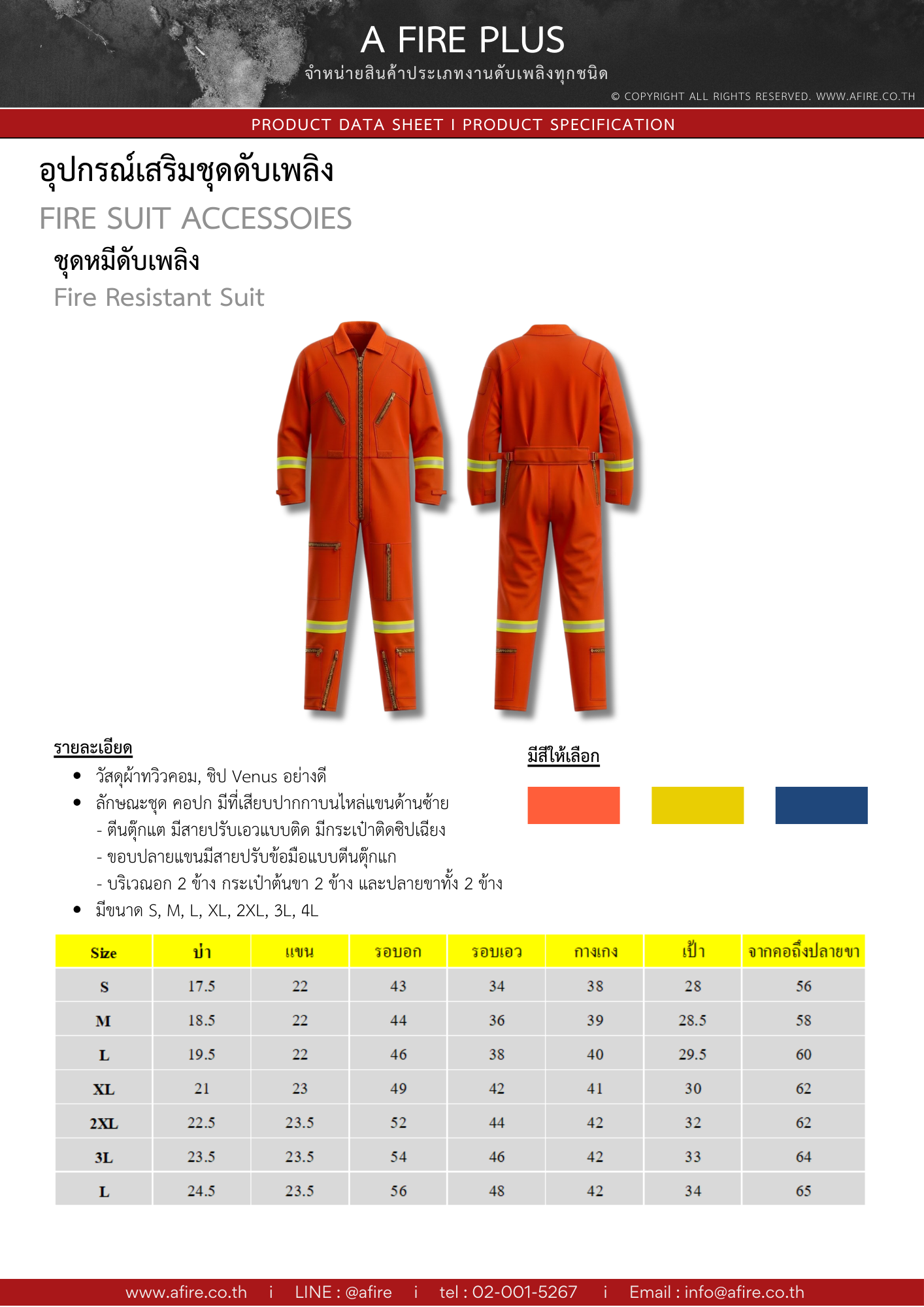 ชุดหมีดับเพลิง (แบบมีแถบสะท้อนแสง) สีกรม,สีส้ม,สีเหลือง (เฉพาะชุดหมีดับเพลิง)