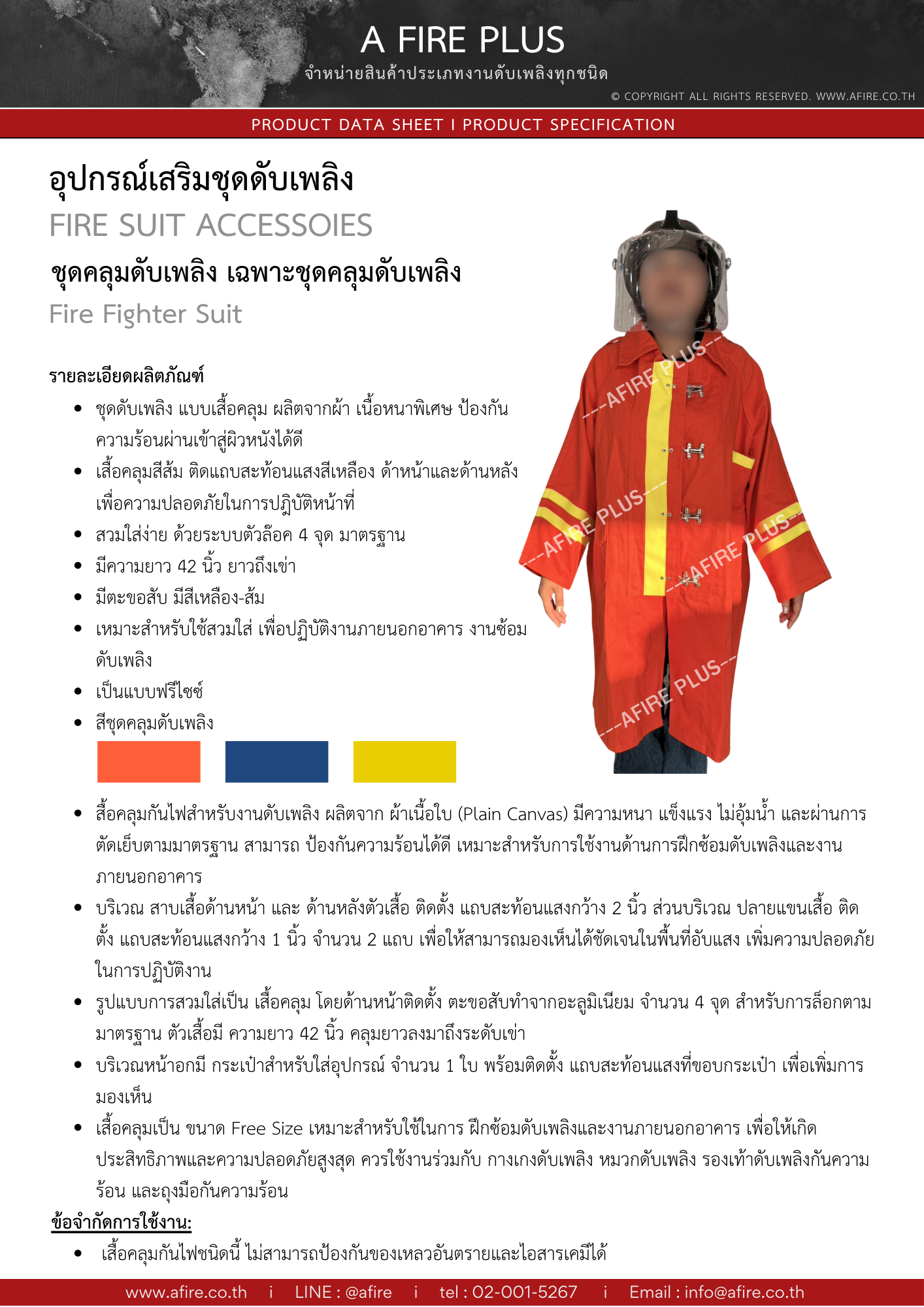 ชุดคลุมดับเพลิง ยาว 42" สีกรม,ส้ม,เหลือง (เฉพาะชุดคลุมดับเพลิง) มีแถบสะท้อนแสง