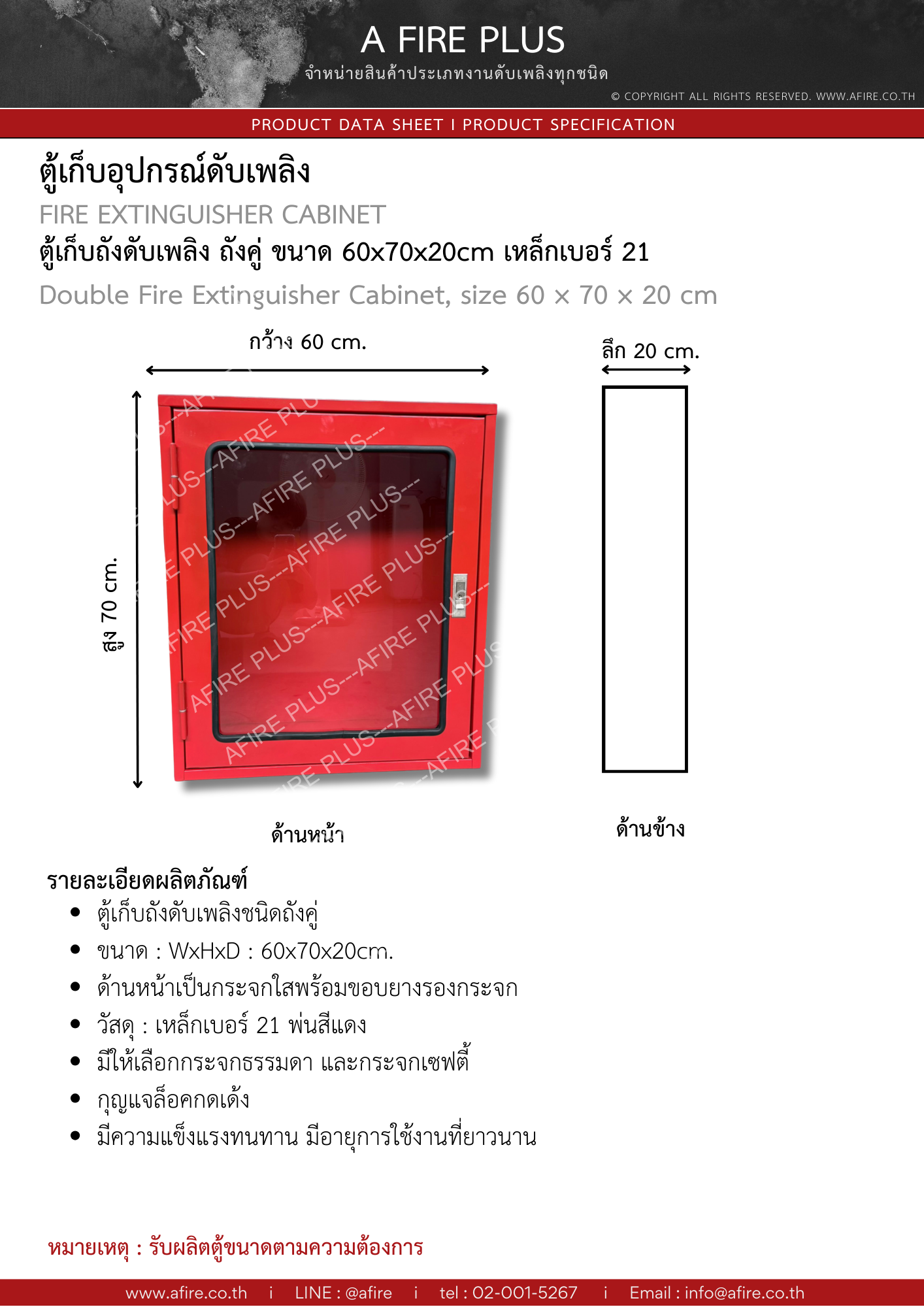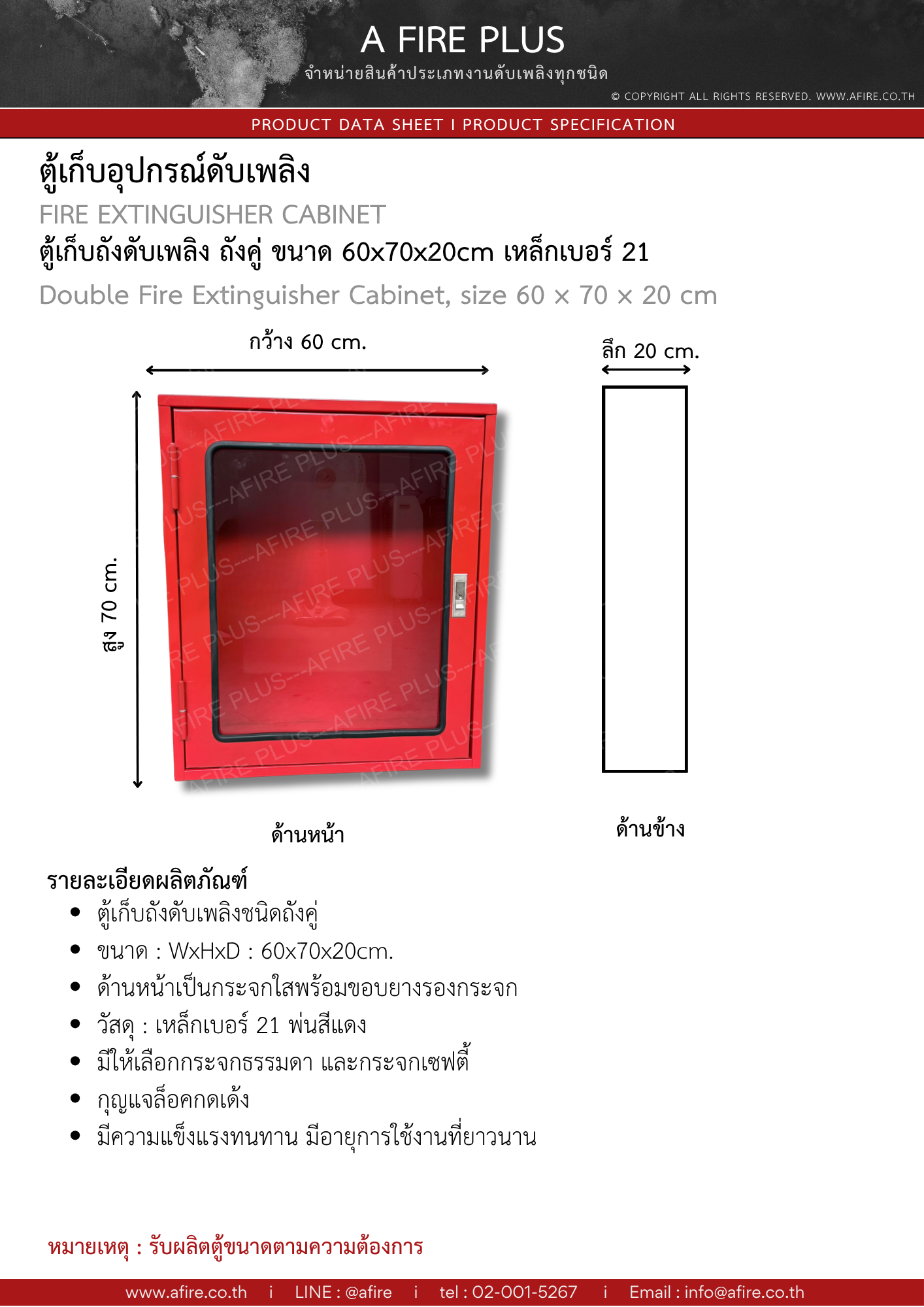 ตู้เก็บเครื่องดับเพลิง แบบถังคู่ ขนาด 60 x 70 x 20cm. Double Fire Extinguisher Cabinet