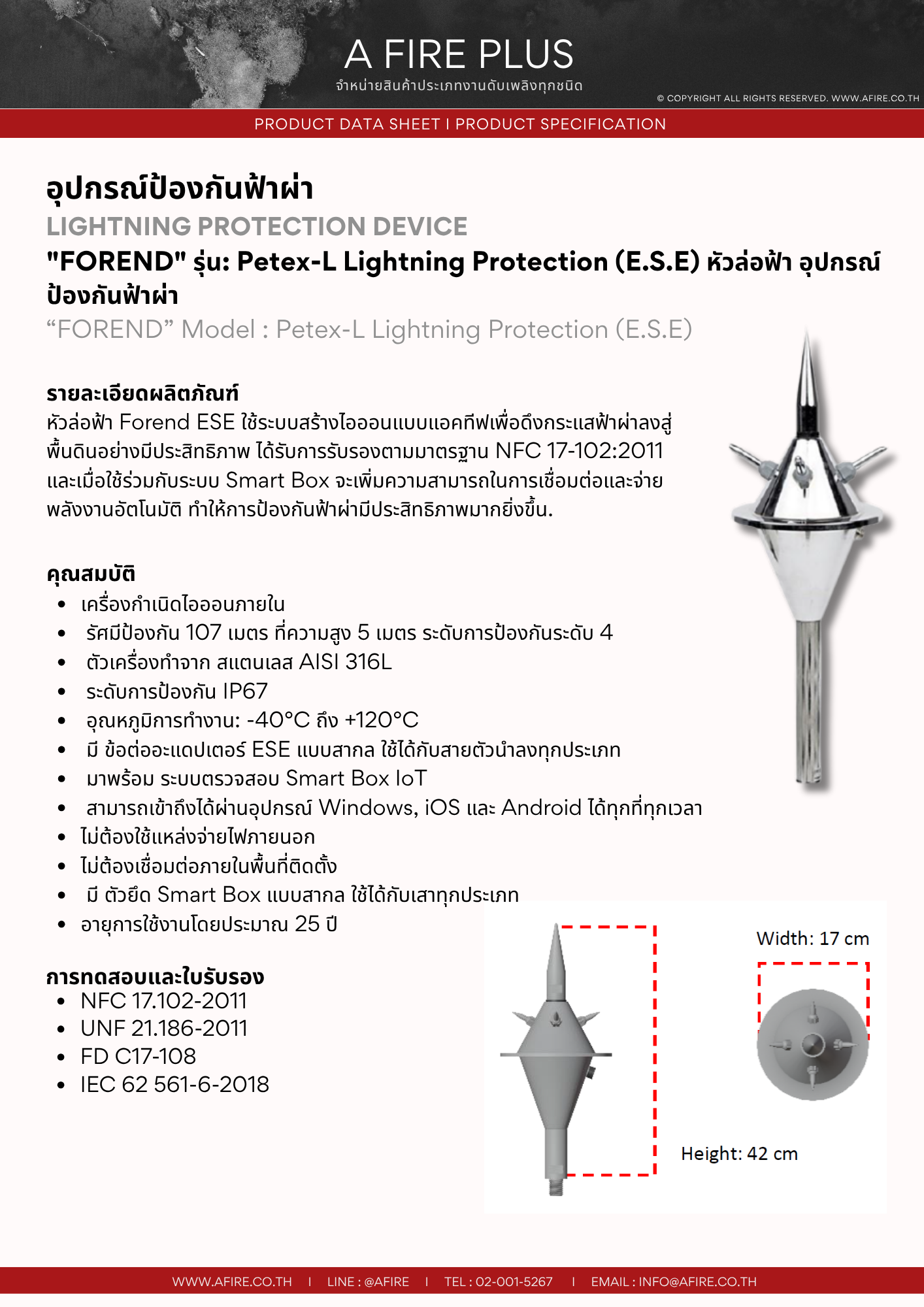 "FOREND" MODEL : Petex-S Lightning Protection (E.S.E) หัวล่อฟ้า อุปกรณ์ป้องกันฟ้าผ่า