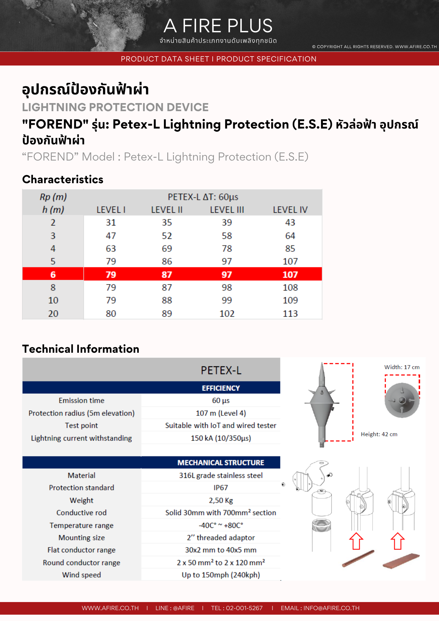 "FOREND" MODEL : Petex-L Lightning Protection (E.S.E) หัวล่อฟ้า อุปกรณ์ป้องกันฟ้าผ่า