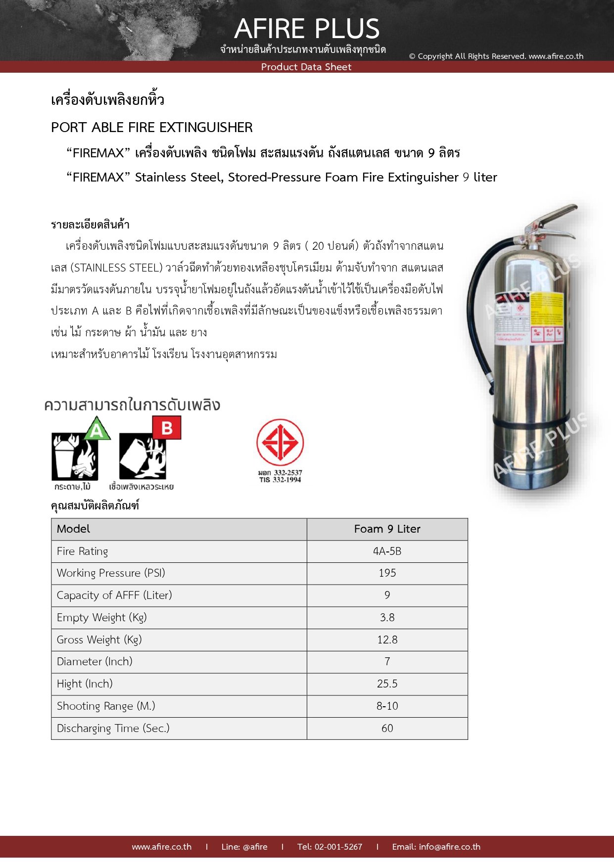 "FIREMAX" เครื่องดับเพลิงชนิดโฟม สะสมแรงดัน ถังสแตนเลส ขนาด 9 ลิตร