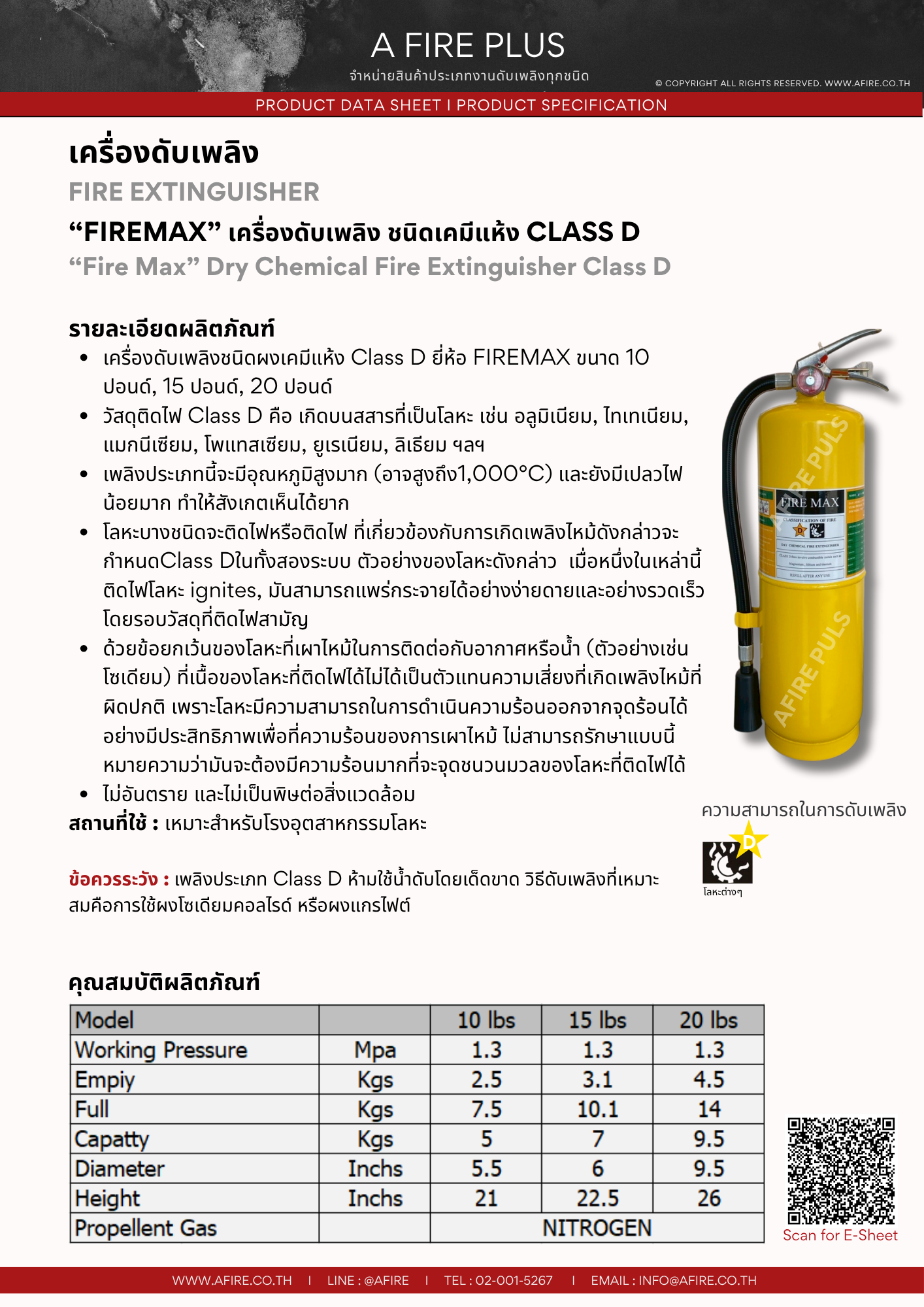 "FIREMAX" เครื่องดับเพลิงสำหรับเคมีแห้ง CLASS D