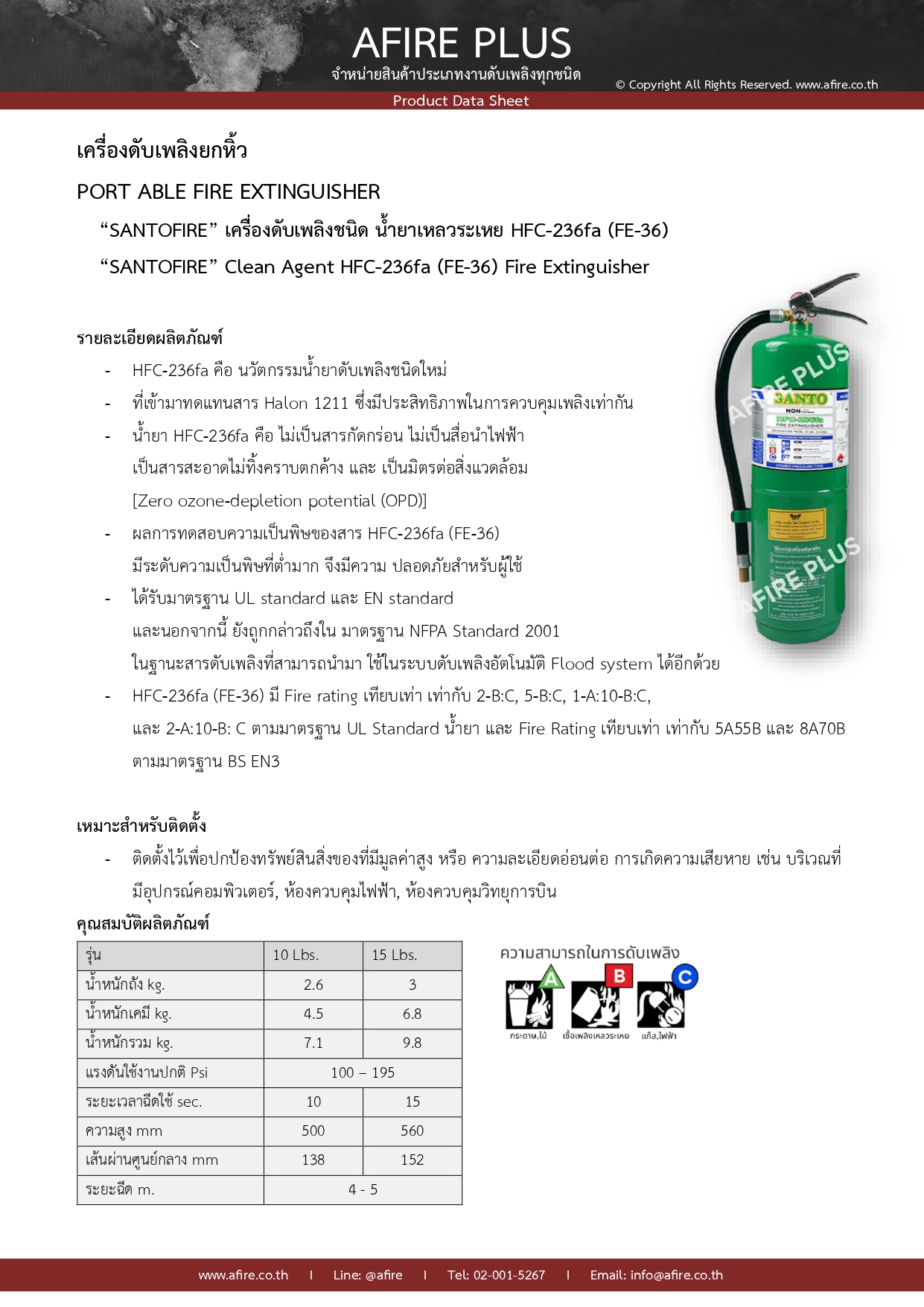"SANTOFIRE" เครื่องดับเพลิงชนิดน้ำยาเหลวระเหย HFC-236fa (FE-36)