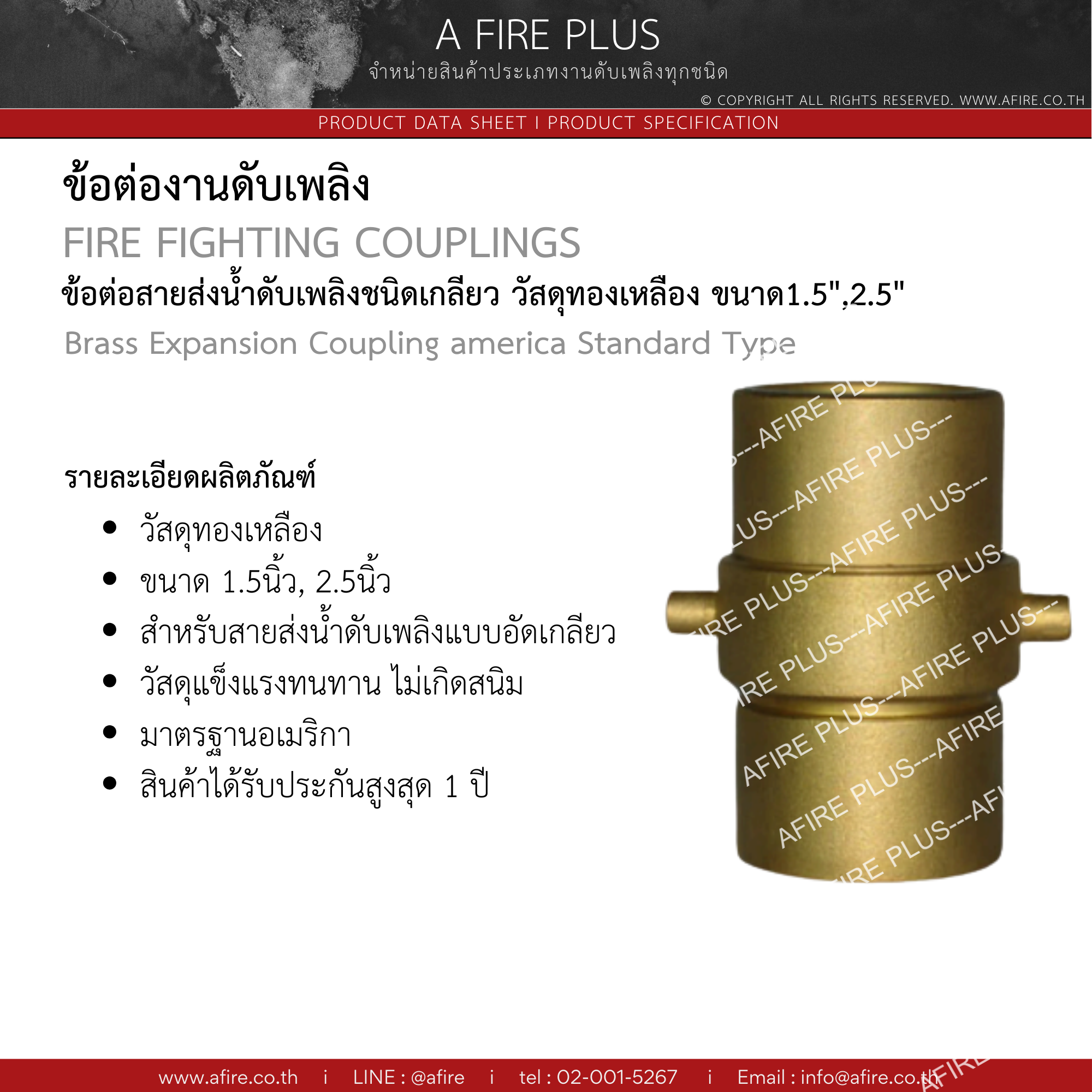 ข้อต่อสายส่งน้ำดับเพลิงชนิดเกลียว วัสดุทองเหลือง ขนาด 1.5",2.5" (มาตรฐานอเมริกา)