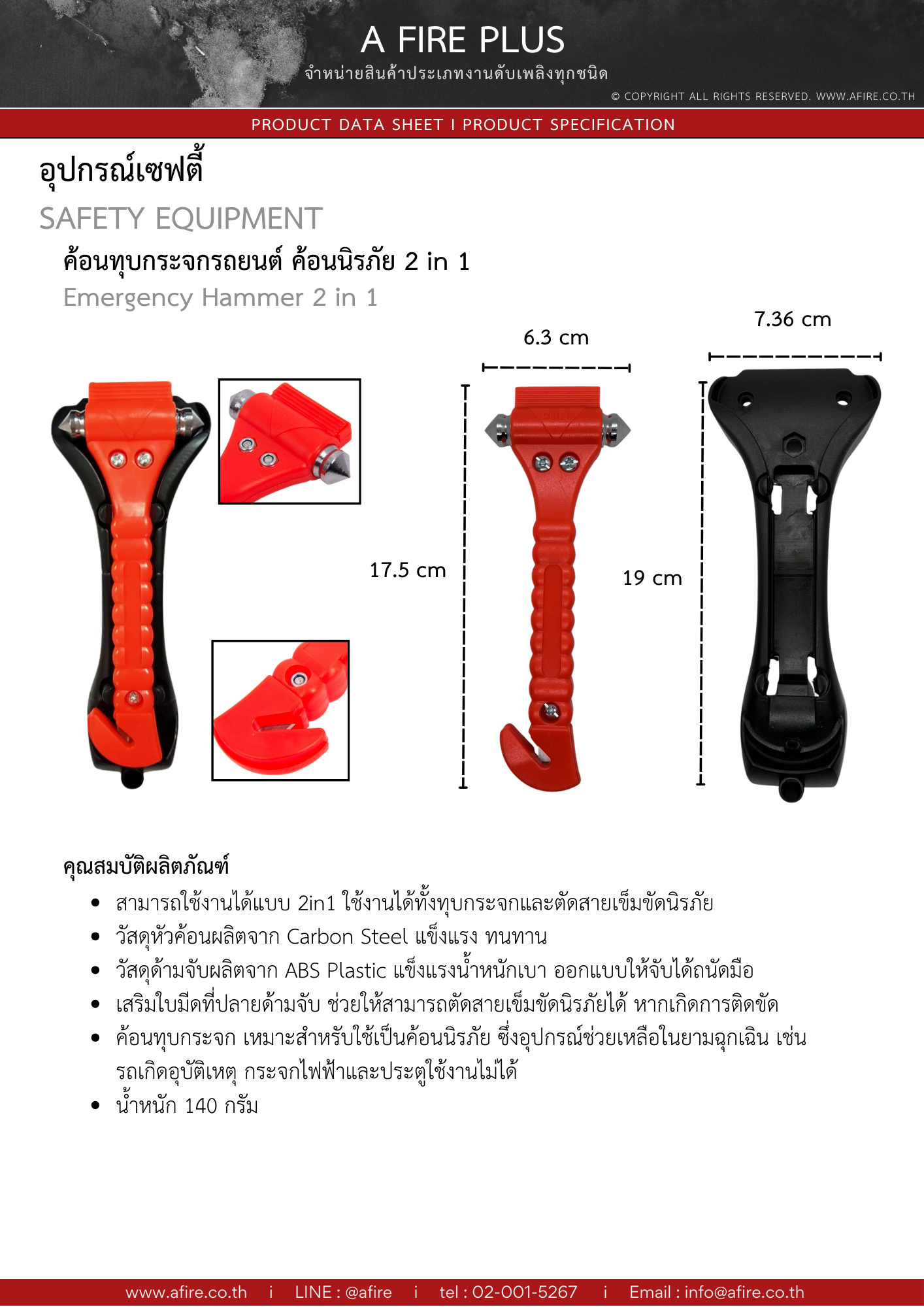 ค้อนนิรภัย ค้อนทุบกระจก แบบ 2 in 1