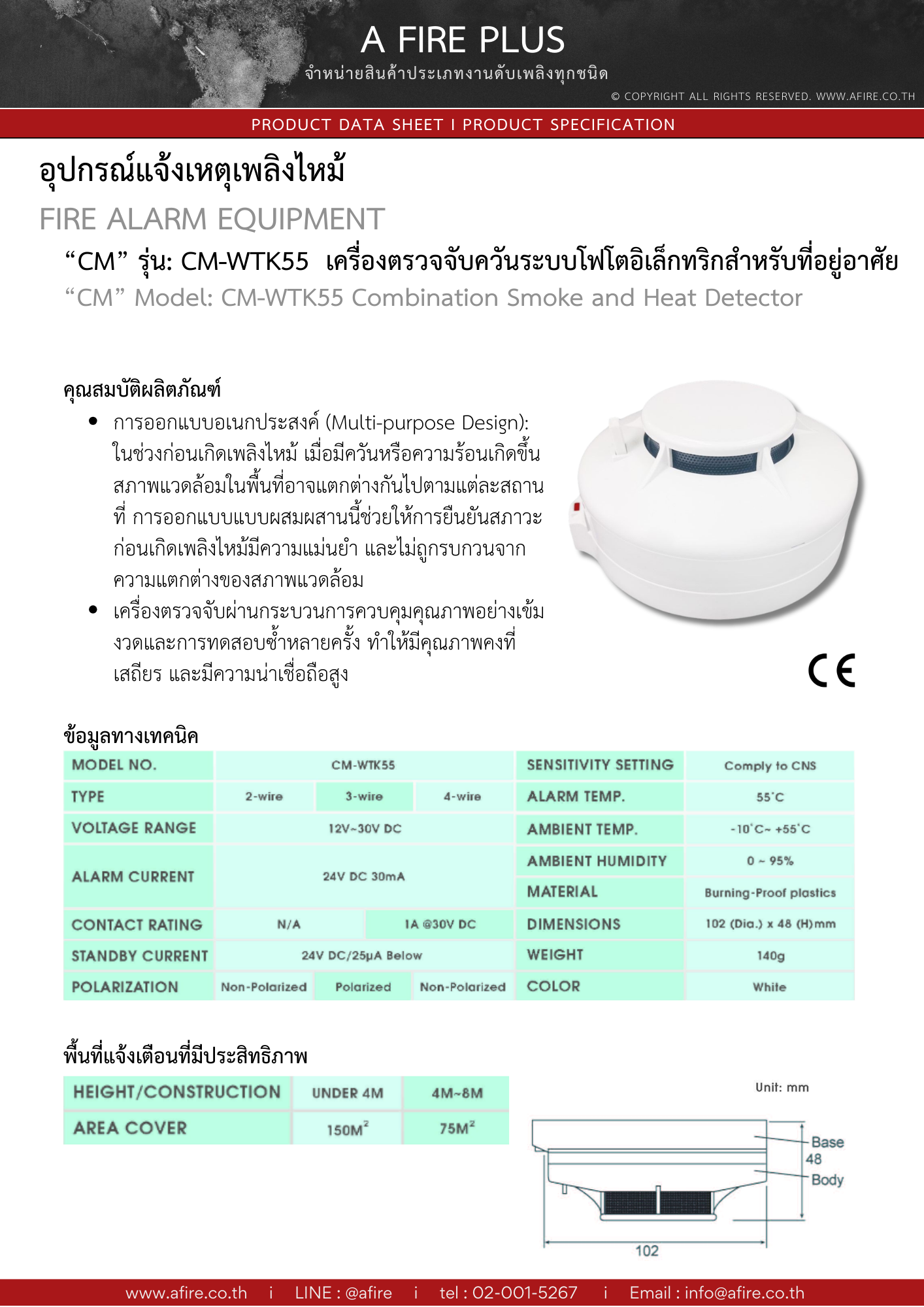 "CM" รุ่น CM-WTK55 Combination Smoke and Heat Detector