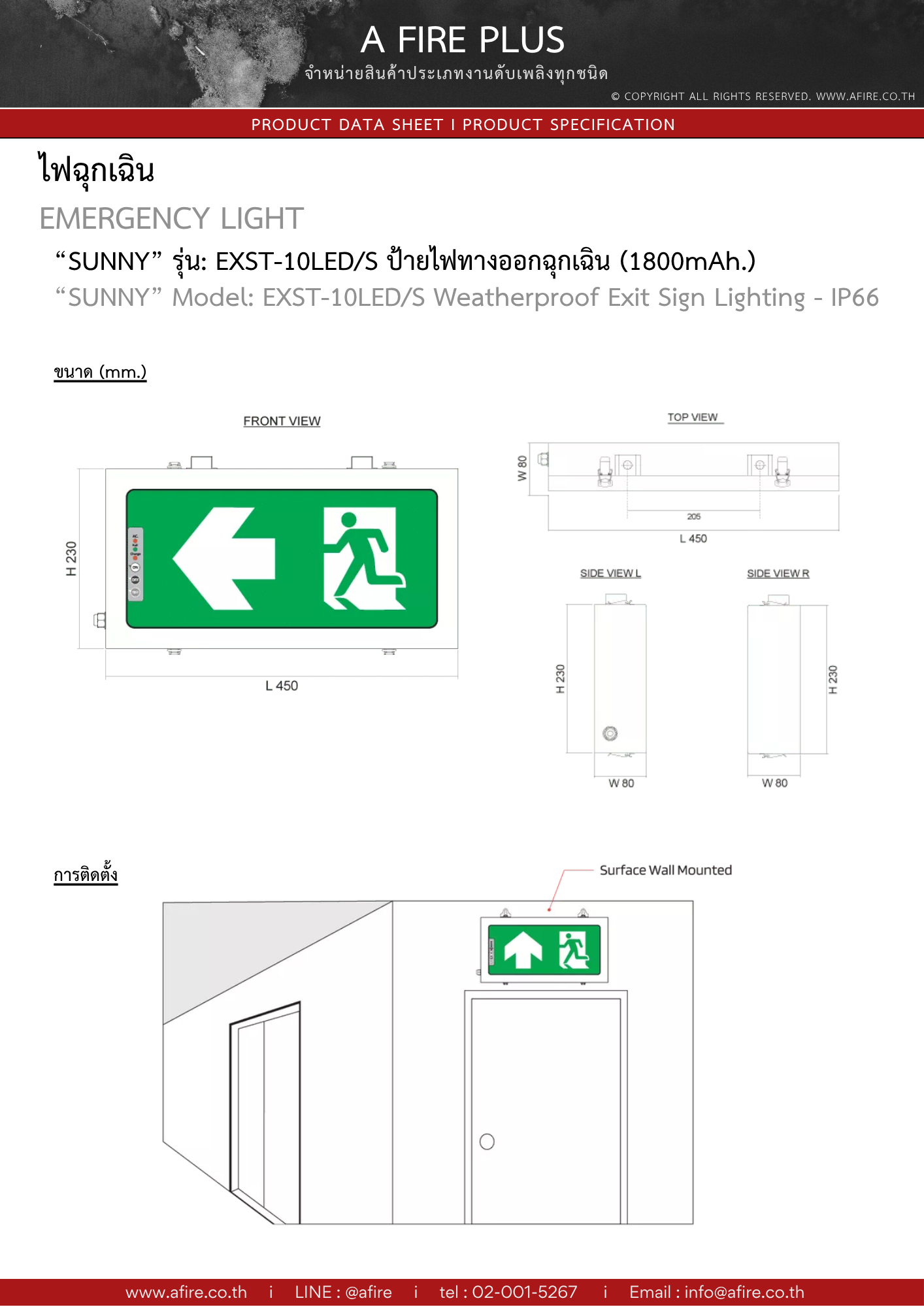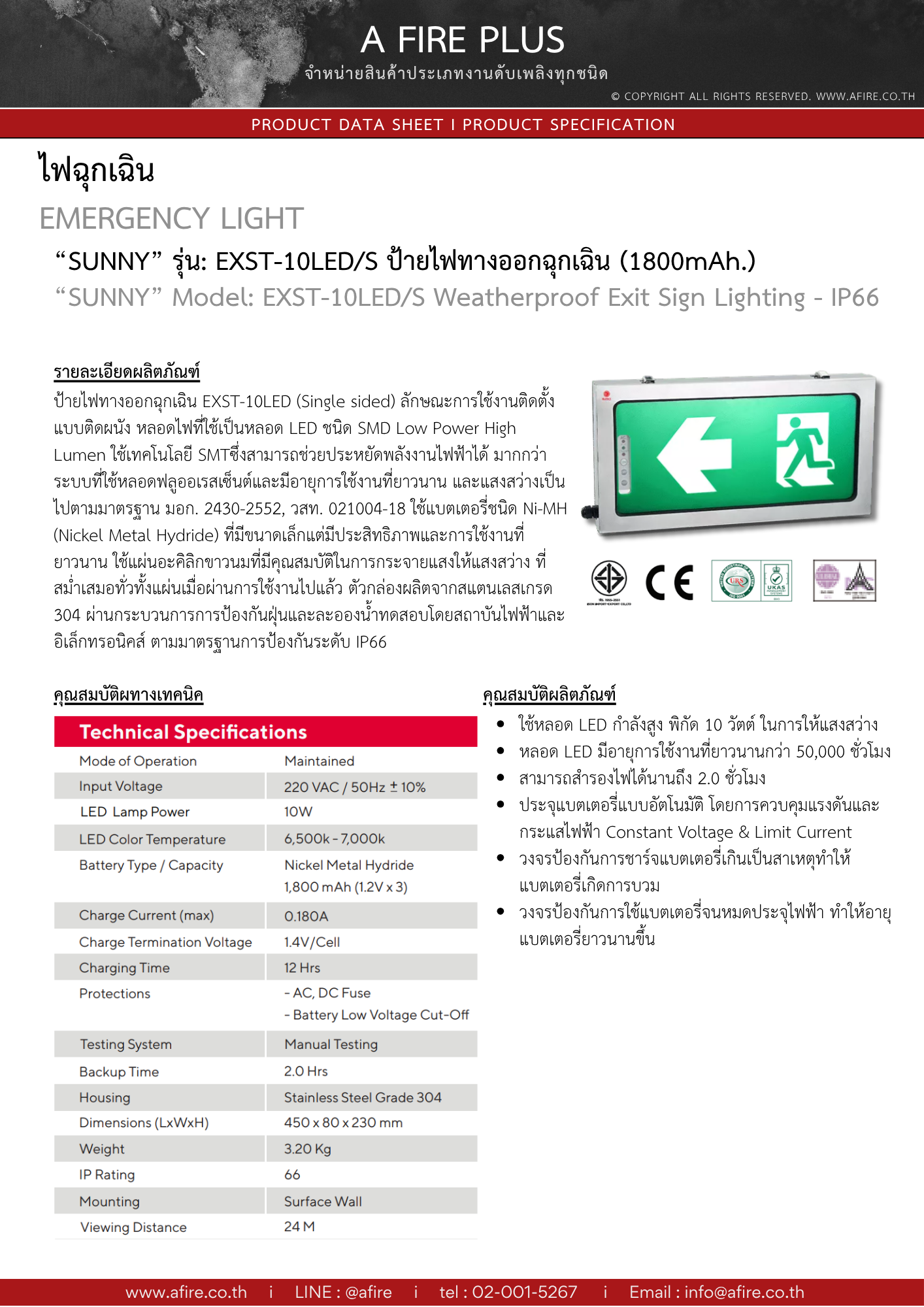 “SUNNY” รุ่น : EXST-10LED ป้ายไฟทางออกฉุกเฉินกันน้ำกันฝุ่น มาตรฐาน IP66