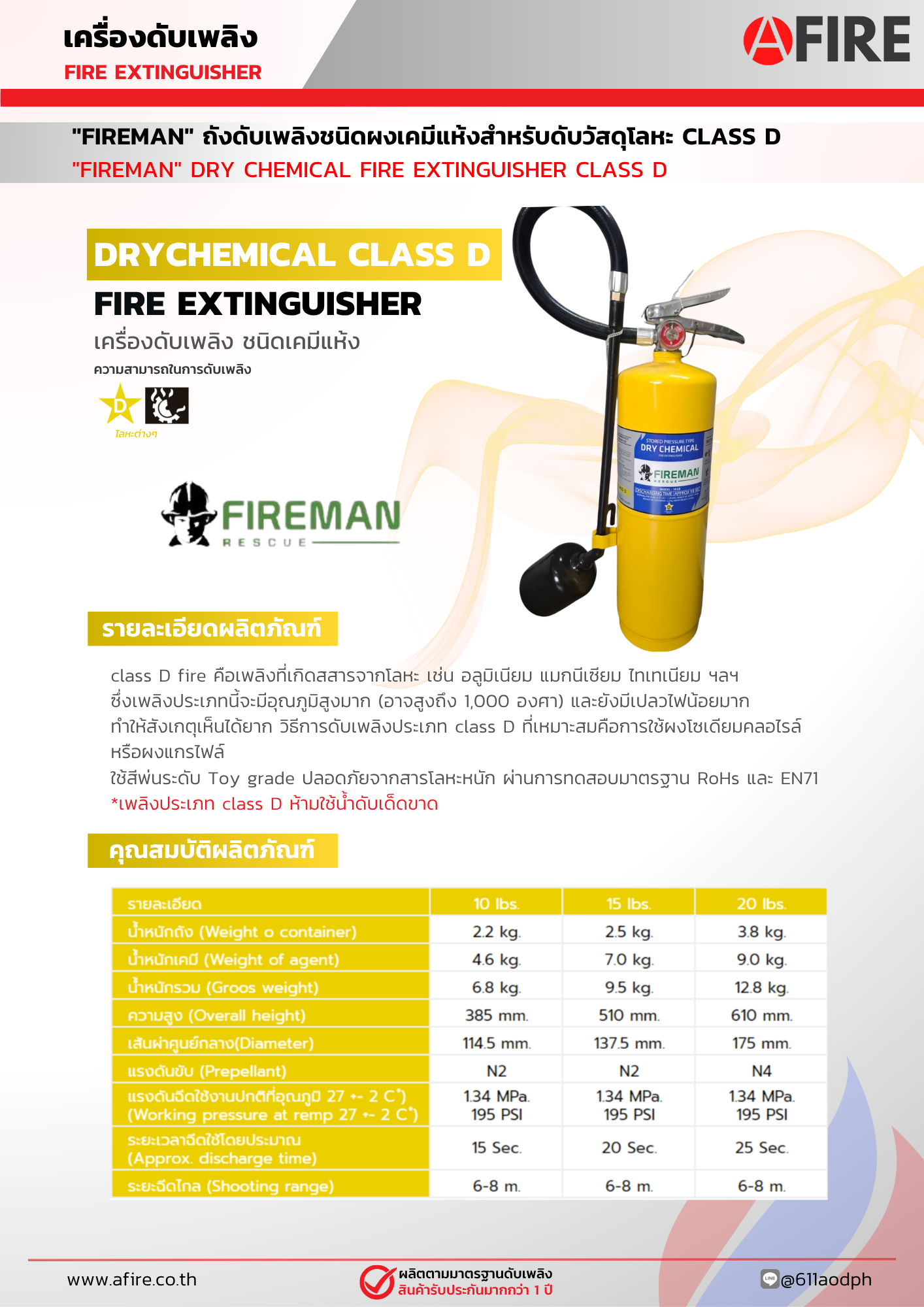 "FIREMAN" ถังดับเพลิงชนิดผงเคมีแห้งสำหรับดับวัสดุโลหะ CLASS D