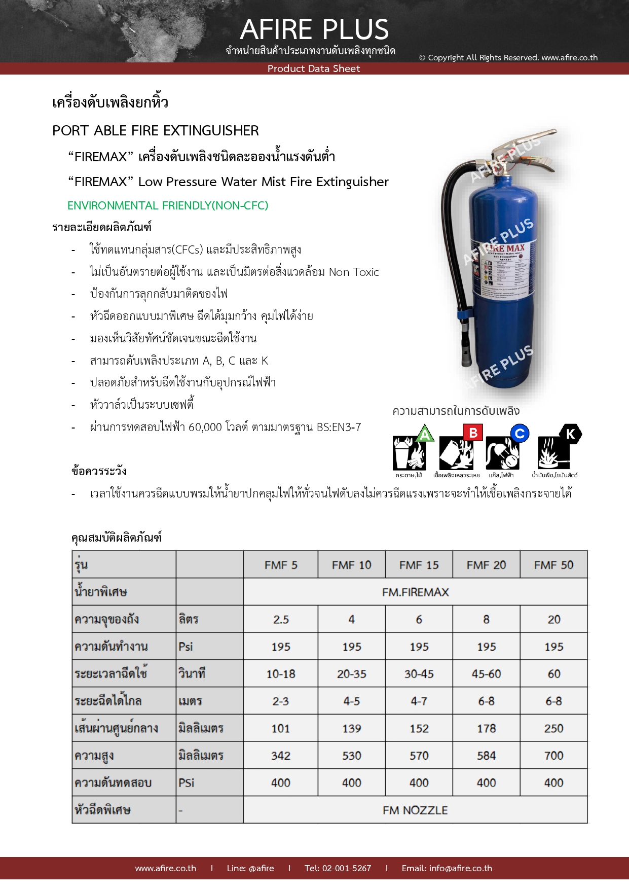 "FIREMAX" ถังดับเพลิง ชนิดน้ำสะสมแรงดัน Low Pressure Water Mist + (Clean Agent)