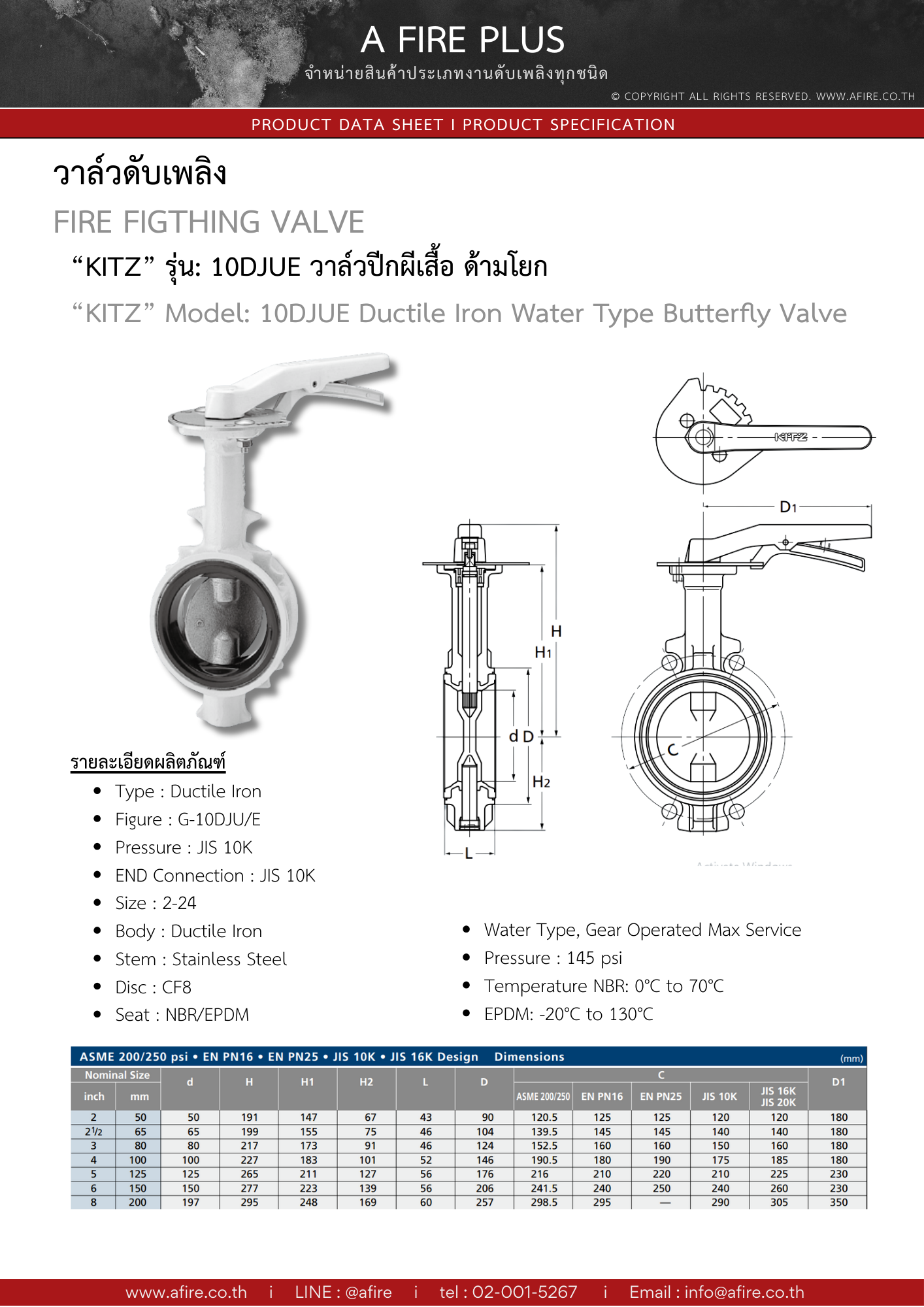 "KITZ" MODEL : 10DJUE วาล์วผีเสื้อ ดักไทล์ลิ้น SUS ด้ามโยก