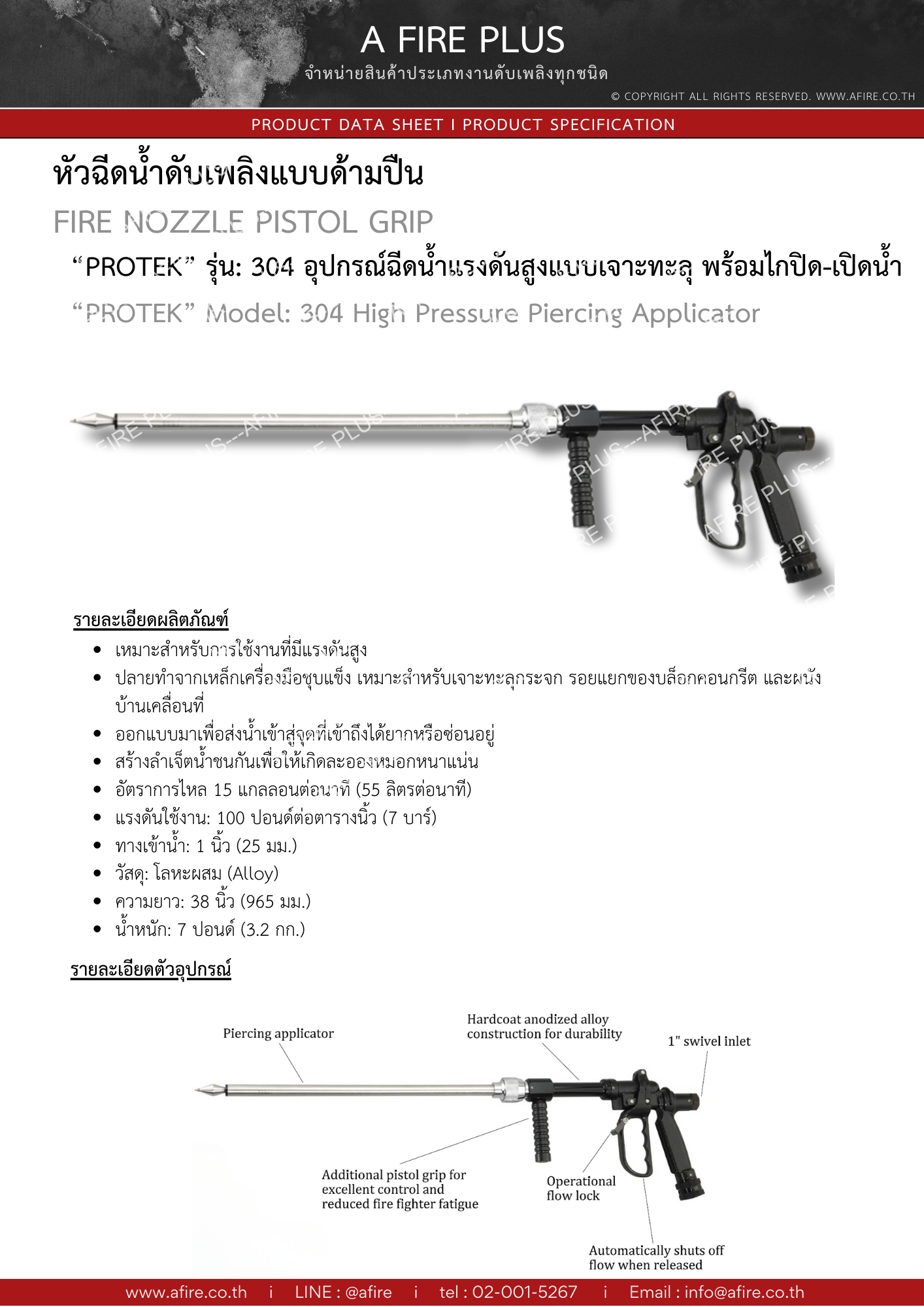 "PROTEK" MODEL : 304 High Pressure Piercing Applicator with Trigger Shutoff and Pistol Grip