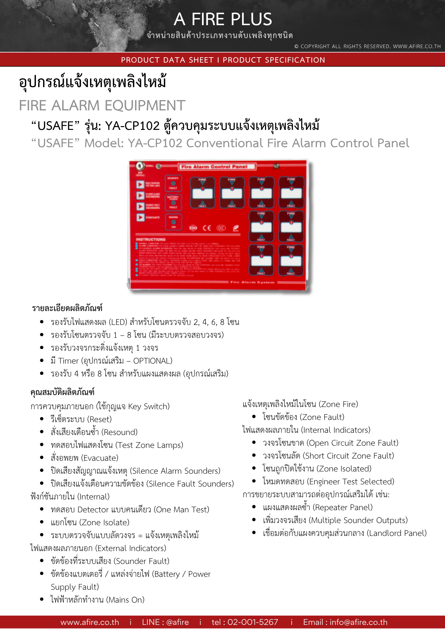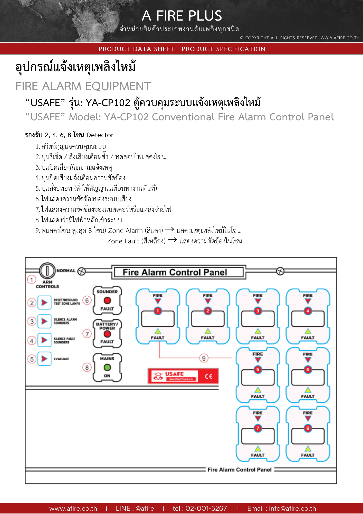 “USAFE” รุ่น: YA-CP102 Fire Alarm Control panel 2,4,6,8 zone